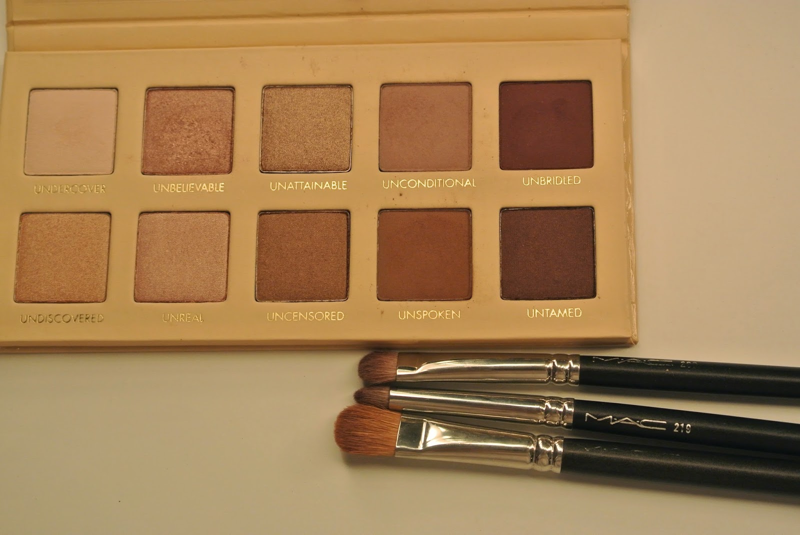 6. Eyeshadow. I like mauvey pinks and neutral browns, and both happen to be in this Lorac Pro Pallet! The biggest MAC brush is used for my lid color, the top brush is used for my crease, and the middle brush is the one I use to brush the shadow along my bottom lash line.