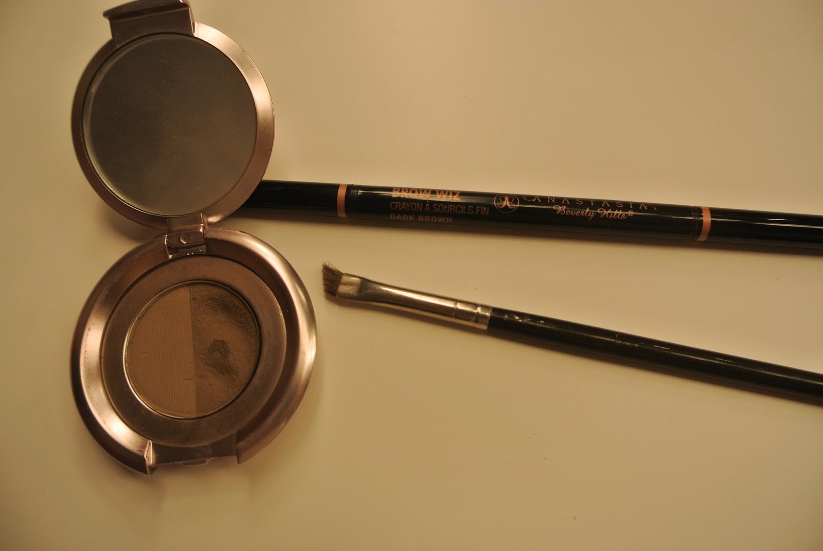 5. Eyebrows. I use the Anastasia brow powder (darker color on the right), and the brow wiz pencil pictured. I don't like to draw brows where they don't exist (because they'd look terrible on me), but I use these two things to darken/better define the brows that I already have.